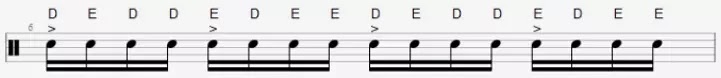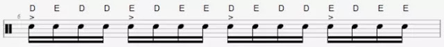 Rudimento é escrito (D significa que é para ser tocado com a mão direita E com a mão esquerda)